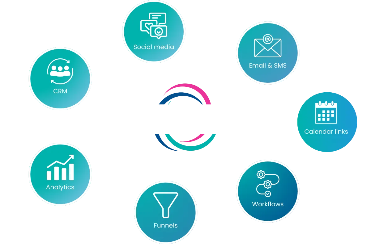 Full online booking, pipelines, social cal, website builder and more!